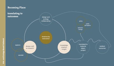 Becoming Place imagines a portal to ontological reimaginings, actively generating a cascade of related, visceral effects that support biodiversity restoration and regeneration of place. It is an active poetics and practice of flourishing that fosters resiliency and revitalises our enchantment with the world.